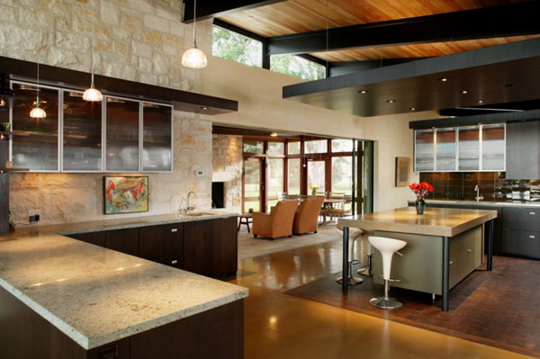I materiali naturali come la pietra e il legno rendono il Kennedy Residence Boulder in Colorado un cortile caldo e accogliente. Progettato da Semple Brown, il progetto è costituito da tre zone di vita importanti, costruite intorno agli alberi maturi sul sito e collegati tra loro da spazi pubblici e cortili. Secondo gli architetti, "la prima ala accoglie gli ospiti nel corridoio principale e funge da asse di collegamento in Wings 2 e 3. Il layout fluttuante e discreto di questa ala permette alla cucina di funzionare come cuore della casa. L'ala esce dalla stanza familiare fuori dalla cucina e si piega per creare le camere per bambini e una suite padronale appartata alla fine di una lunga sala in pietra.La corte d'ingresso è incorniciata da un muro di pietra che si piega attorno al garage, sala giochi, Fienile e suite per ospiti creando la terza ala ". Invitiamo a fare un giro virtuale di questa casa moderna e ci dica se trova il suo layout ispirato.