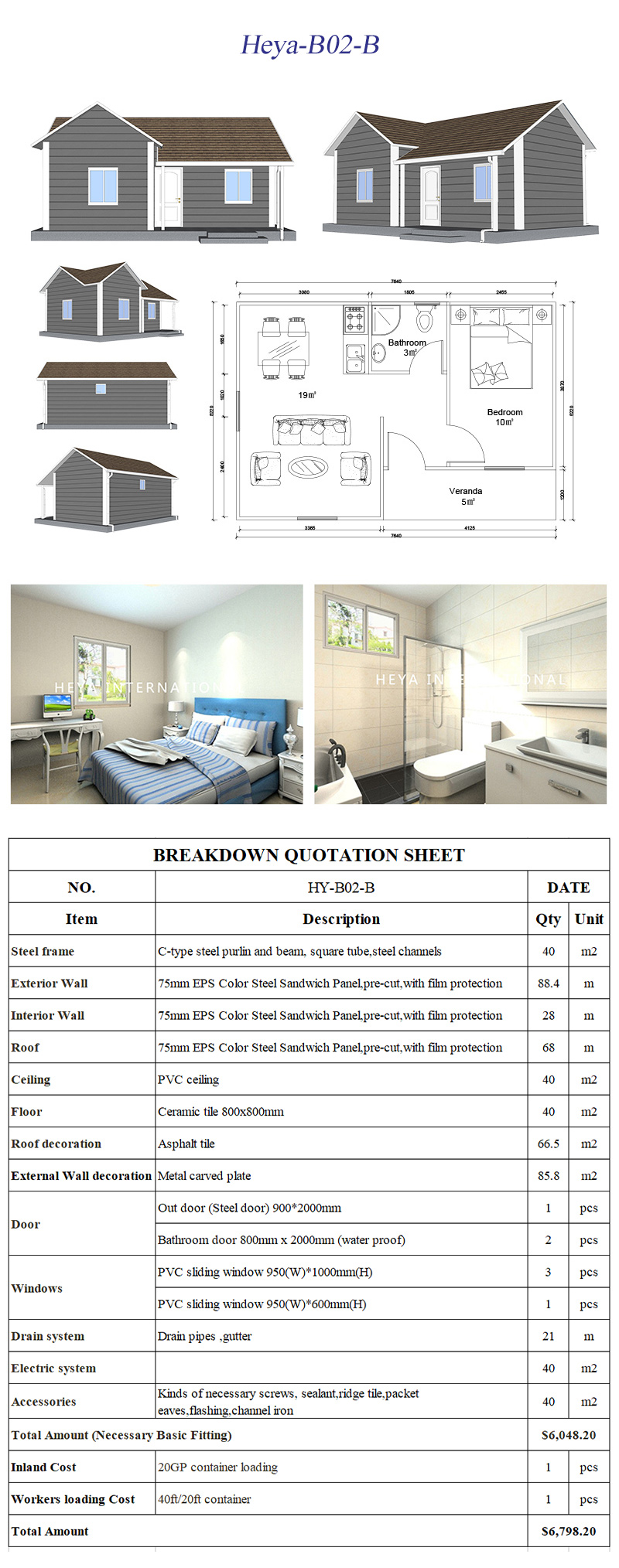 Дом > Категория > Качественный сборный дом > Дом из сэндвич-панелей  > Heya-B02-B Китай самые продаваемые сборные квартиры подрядчик 1-комнатный сборный дом